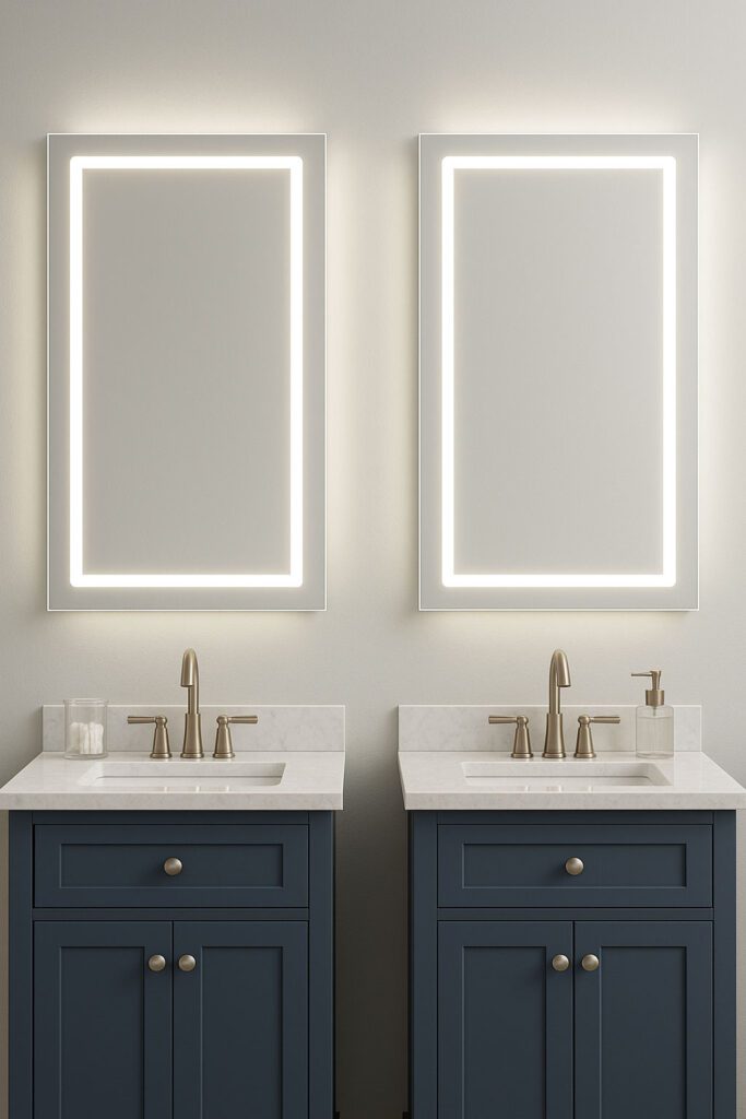 Add dedicated mirror lights or a backlit mirror for task lighting. Keep these on a separate switch so you can use them independently.