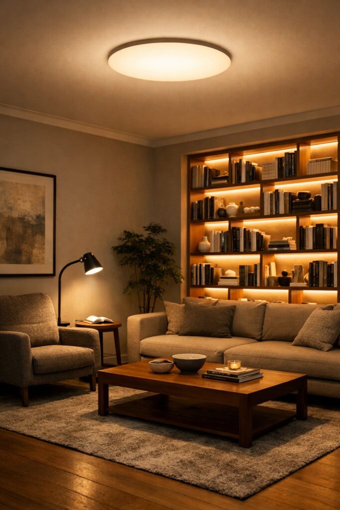 Avoiding glare and harsh contrasts also supports visual comfort in lighting, helping living rooms feel calm rather than tiring on the eyes.