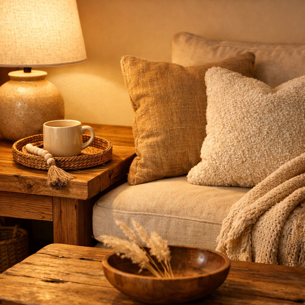 Soft shadows are just as important as light. A cosy living room should never feel flat or overlit.