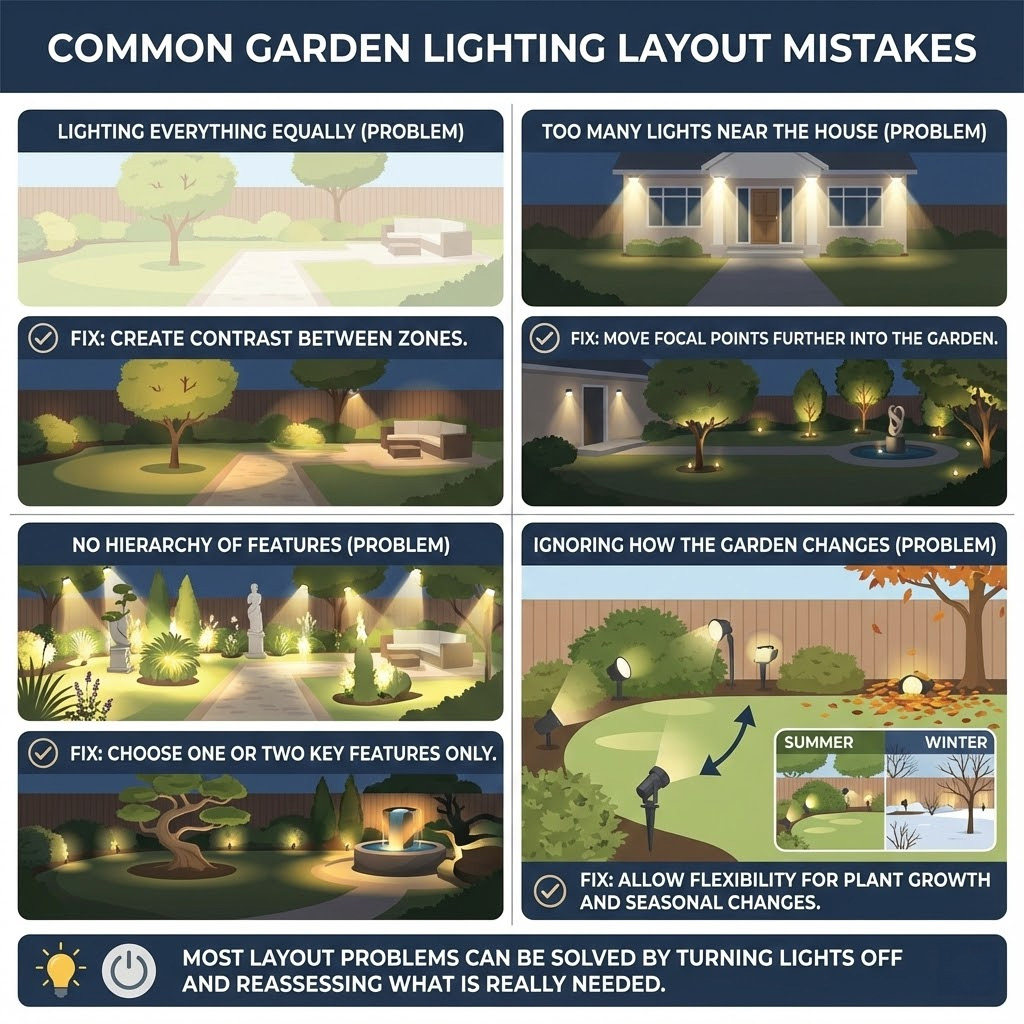 Common garden lighting layout mistakes
