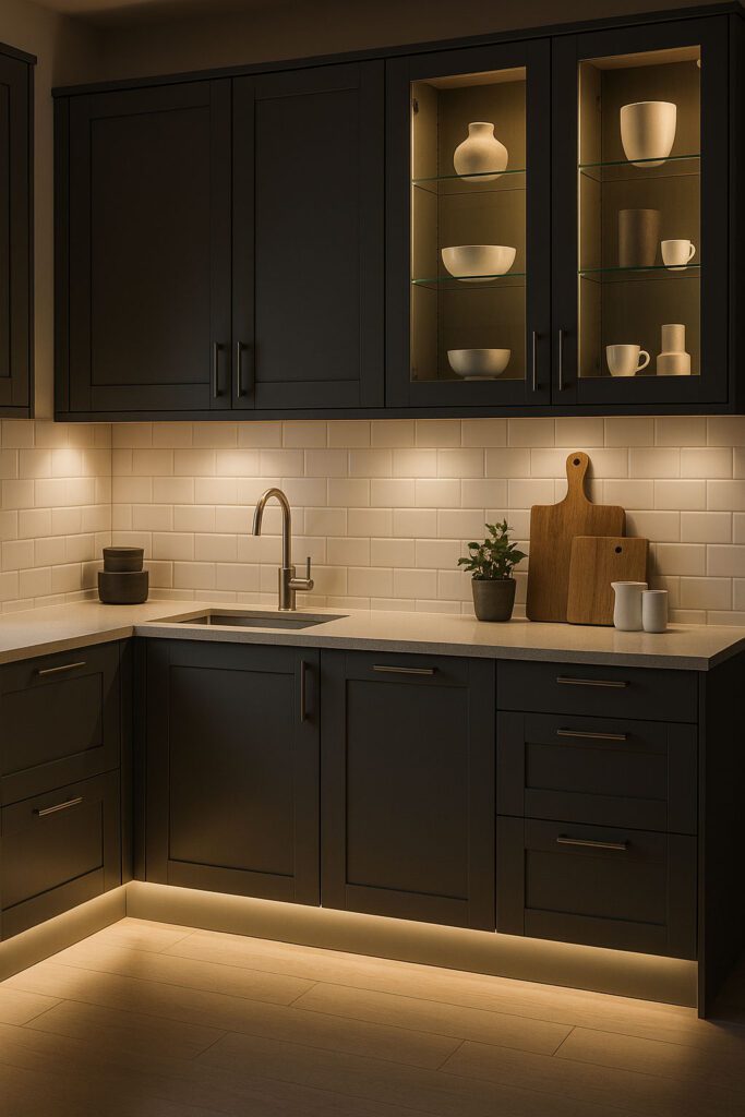 • Under-cabinet LED strips to illuminate countertops.