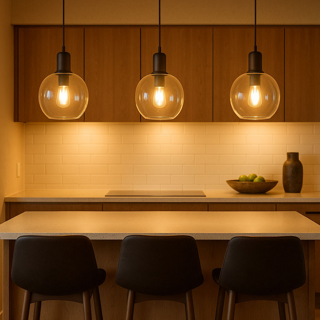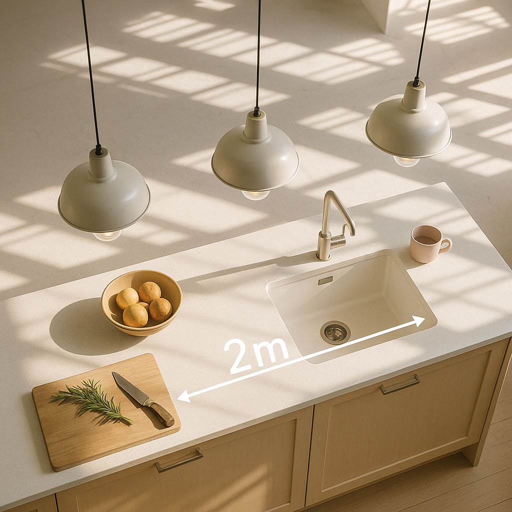 ✨ Hang pendants 70–90cm above your worktop.