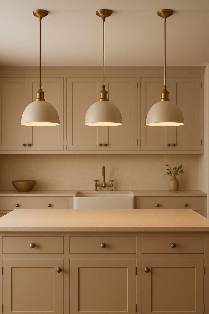 A total favourite in British homes! Three pendants give a lovely rhythm across the island – nothing too busy, nothing too minimal, just that perfect Goldilocks “spot on” moment. Especially gorgeous in Shaker kitchens or anything with a hint of symmetry. 😍