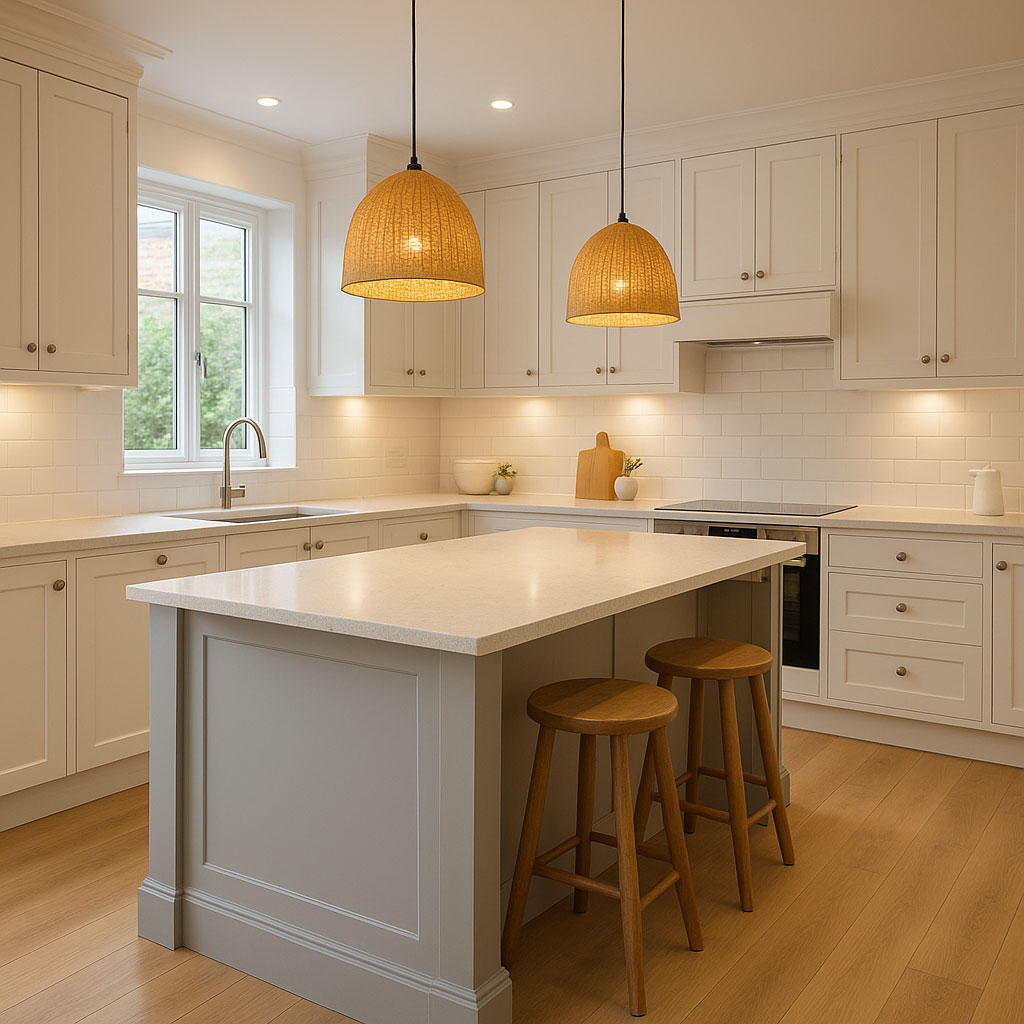 Good kitchen lighting is about balance rather than chasing a single fitting or trend. Once the basics are right – layered lighting, appropriate brightness, and comfortable colour temperature – the rest becomes much easier to fine tune.