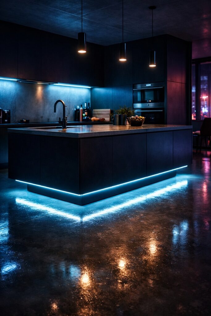 For subtle, premium effects, our plinth and kickboard lighting ideas show how to add low level light without overpowering the room. Kitchens with exposed materials and darker finishes are explored in our industrial kitchen lighting guide, while softer, layered approaches are covered in the cottage and farmhouse kitchen lighting article.off.