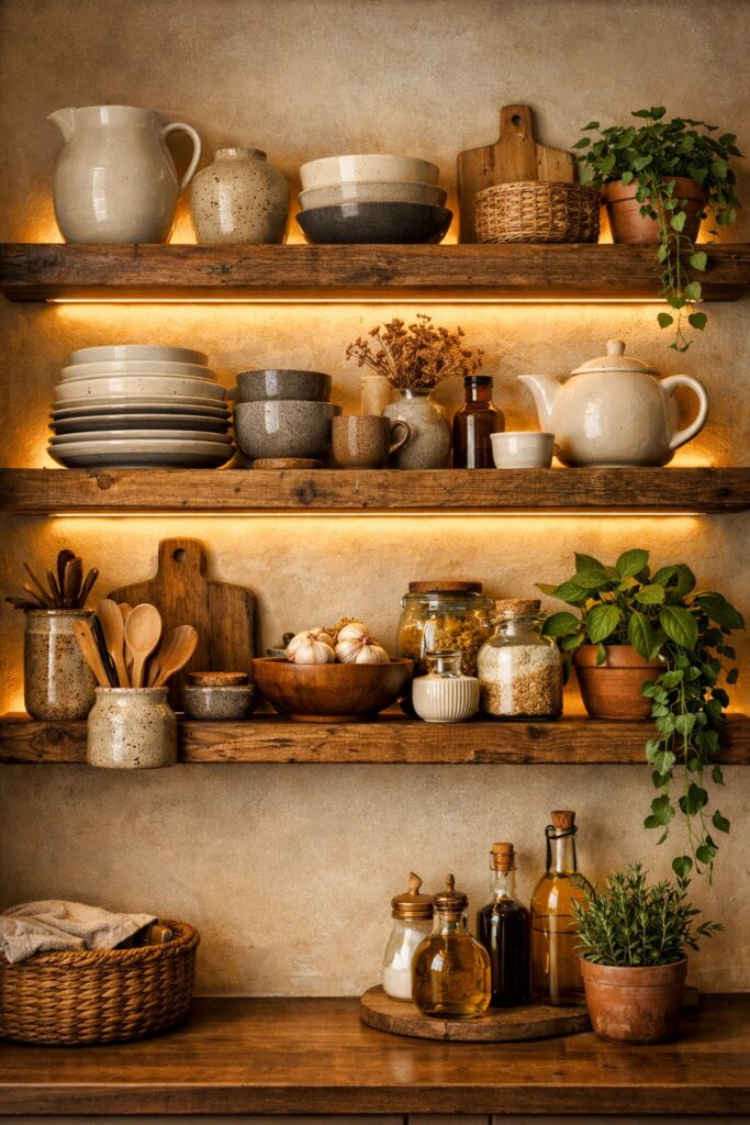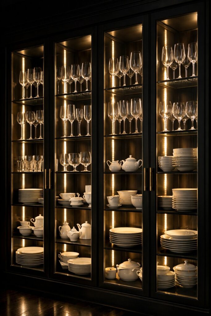 Accent lighting adds depth and atmosphere. This includes shelf lighting, plinth lighting, and lighting inside glass cabinets. It softens the room in the evening and stops the kitchen feeling like a workspace after dark.