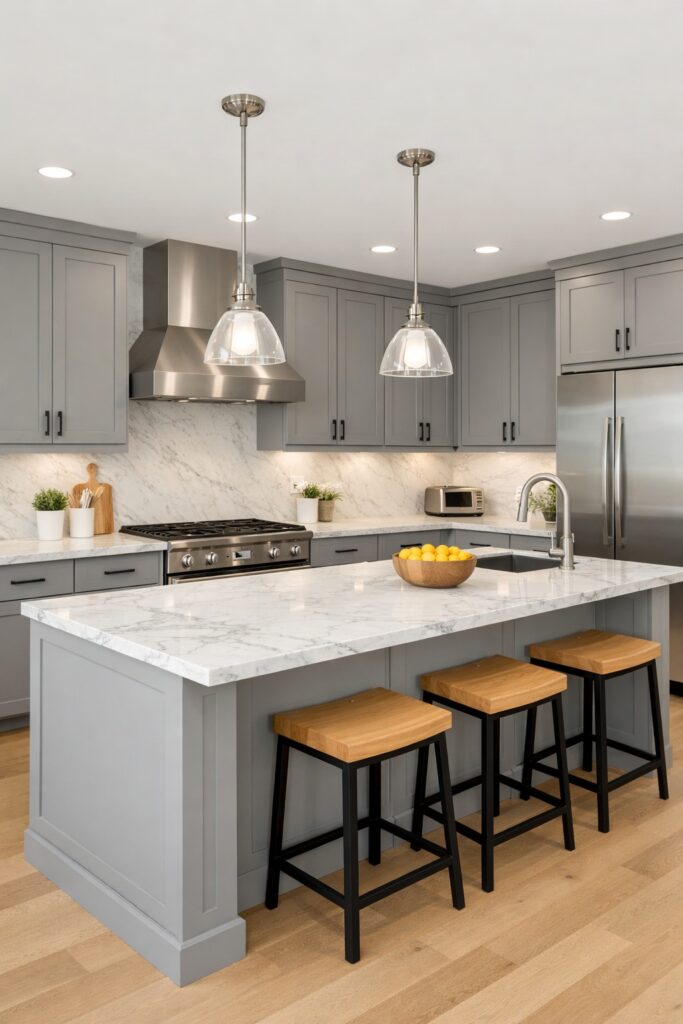 Pendant lights are the most common choice over islands, but the key decisions are not just about style. The number of pendants, their spacing, and their hanging height all affect how usable and comfortable the kitchen feels.