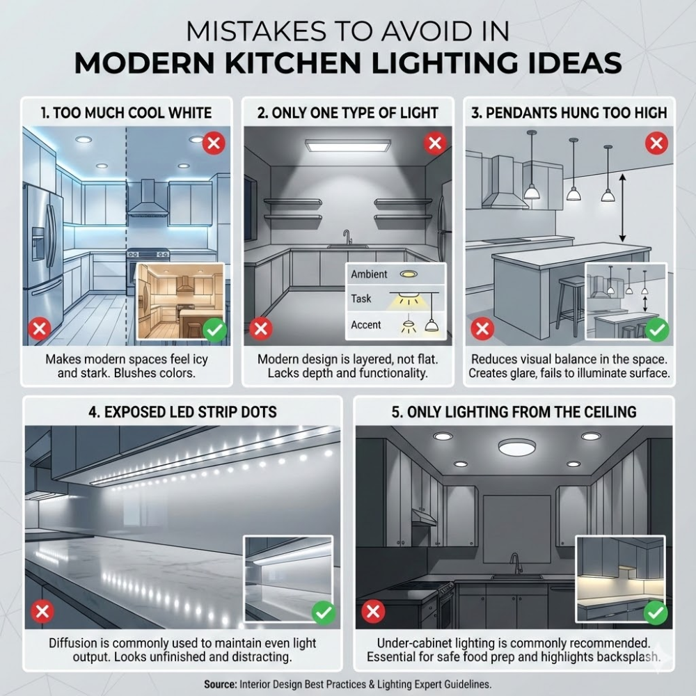 Mistakes to Avoid in Modern Kitchen Lighting Ideas