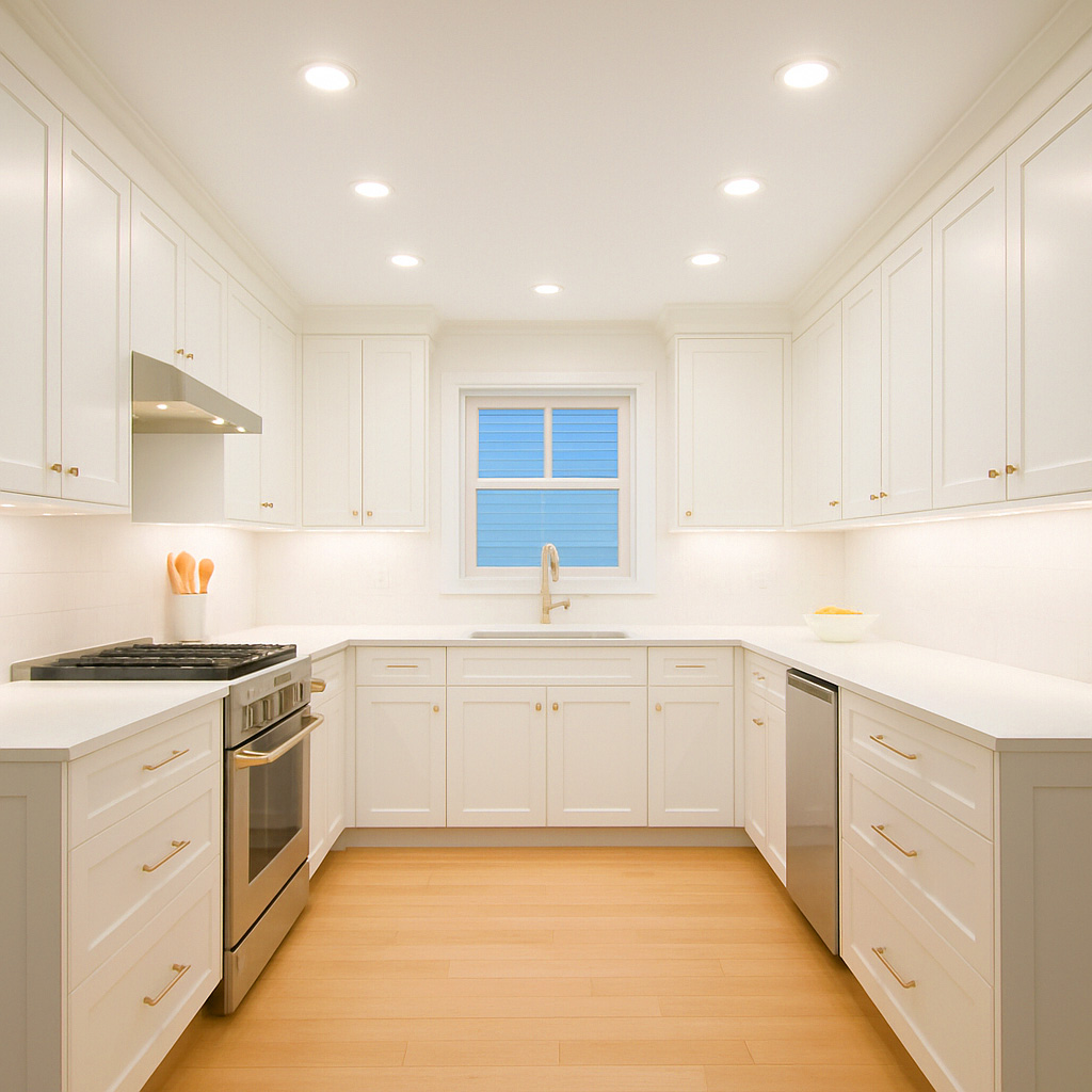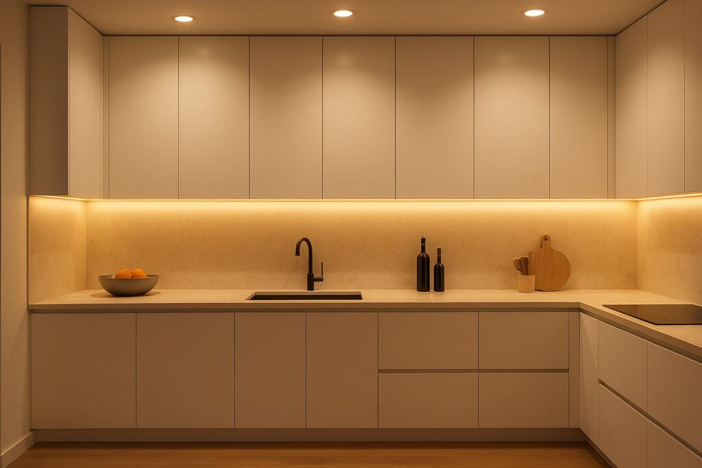 - Under-cabinet LED strips – for task performance and visual emphasis