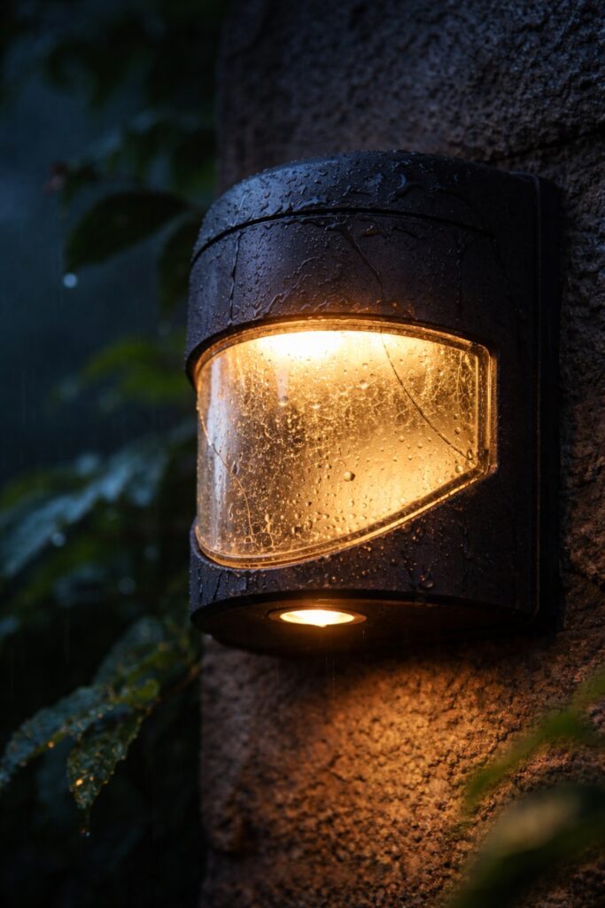Temperature changes matter too. Outdoor lights warm up when on and cool quickly when off. Repeated expansion and contraction slowly deforms seals and can loosen internal connections. In winter, freezing temperatures can worsen the problem because trapped moisture expands.
