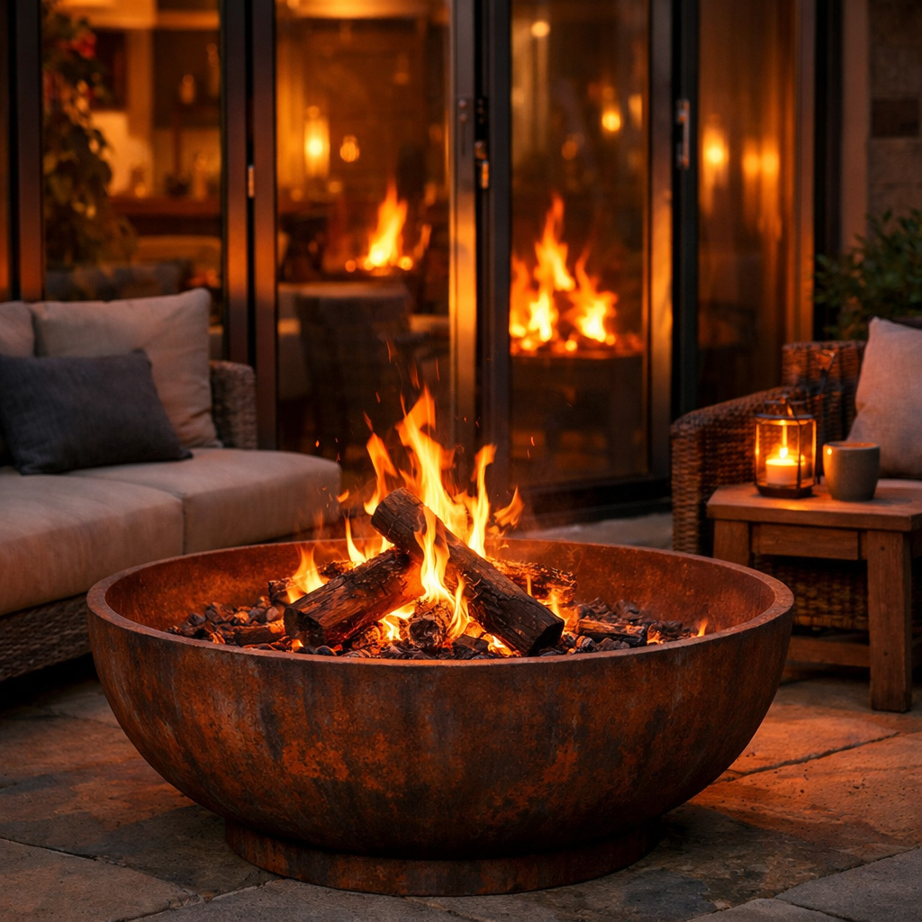 - Reflections: Place your fire pit near a window to double the visual impact of the flames.