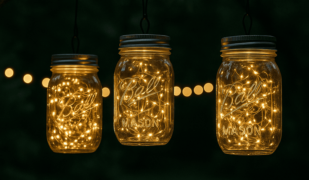 The best part is their versatility. You can fill them with battery-powered “micro” fairy lights for a high-intensity sparkle, or swap the standard lids for specialized solar-cell inserts. This allows them to charge during the day and glow automatically at dusk with zero effort.