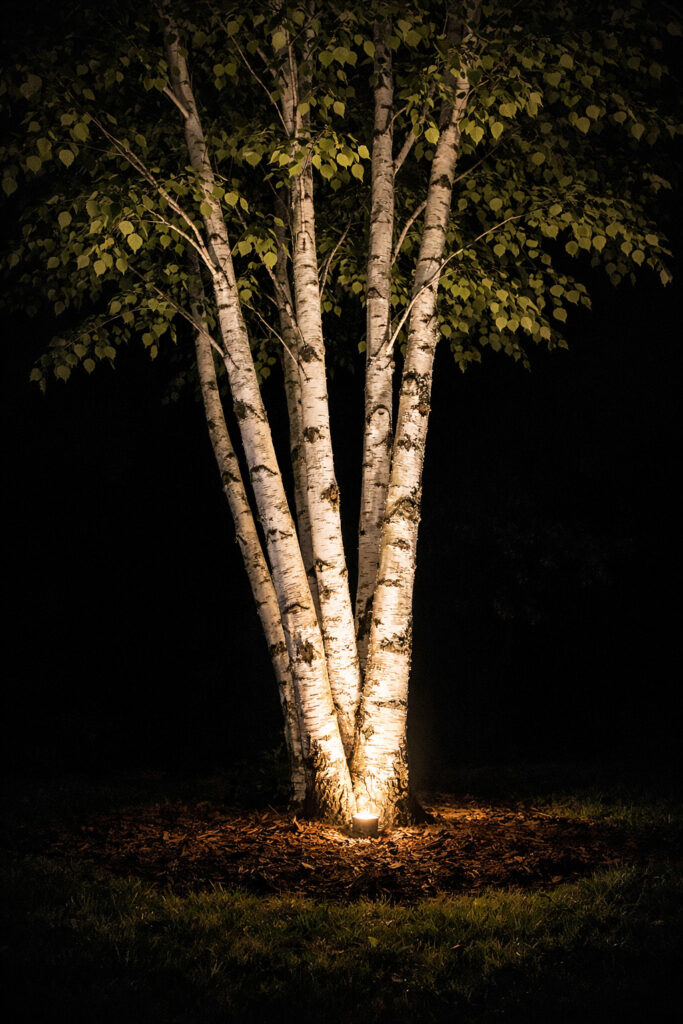This technique adds a sense of “theatre” to the garden. By placing a small spotlight at the base of a tree and aiming it upward, you highlight the skeleton of the greenery. It creates a beautiful, glowing backdrop that makes the garden feel endless.