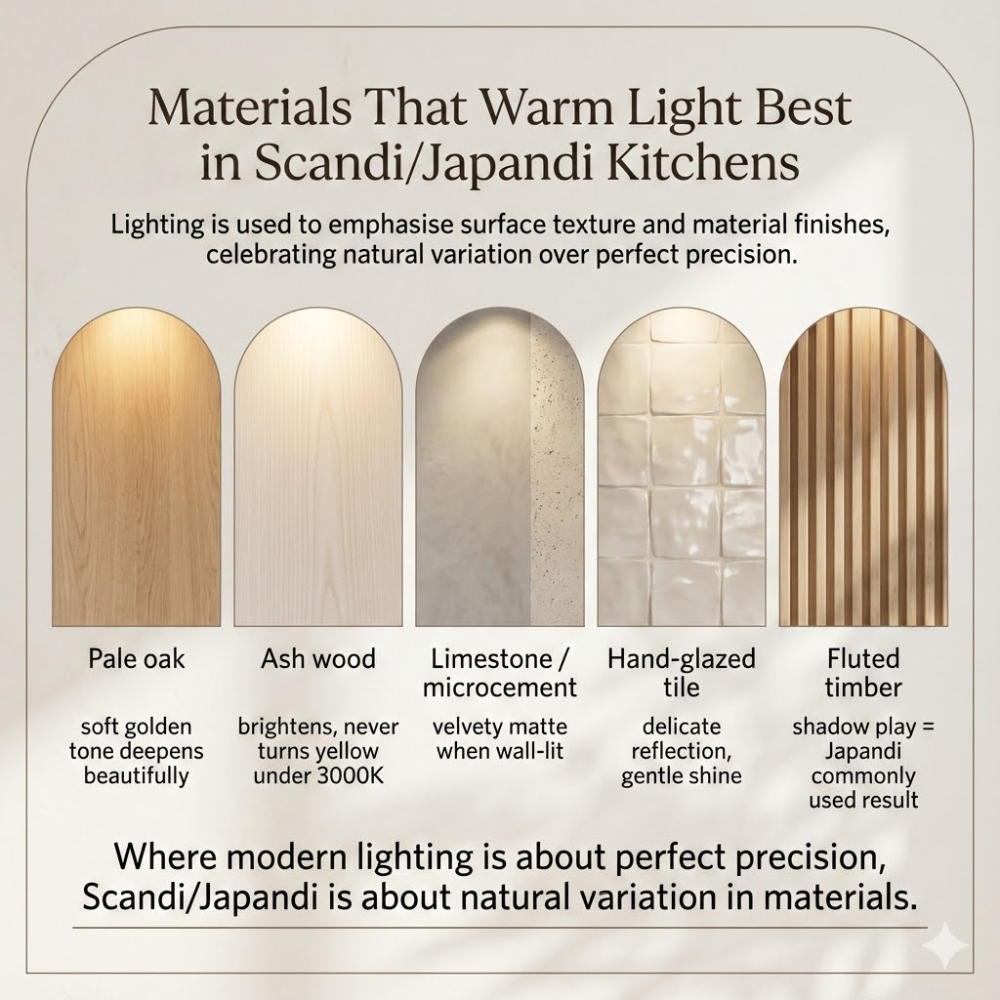 Materials That Warm Light Best in Scandi/Japandi Kitchens