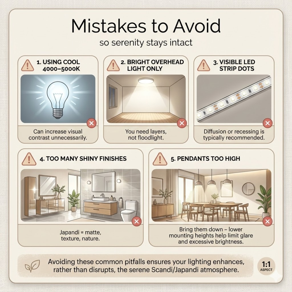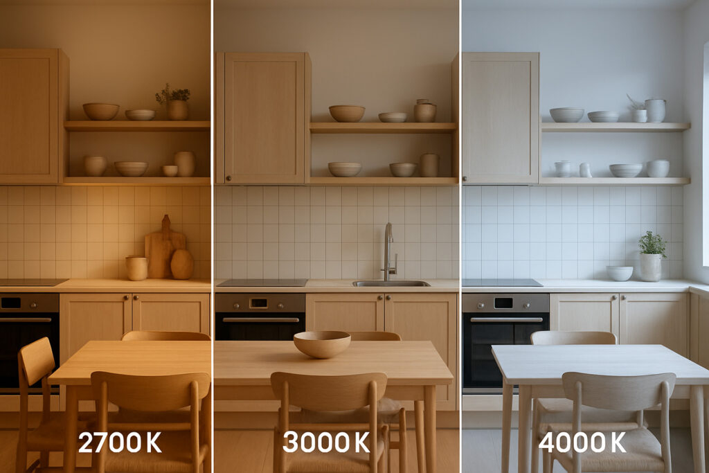 2700K–3000K is commonly used for Scandi and Japandi kitchens.